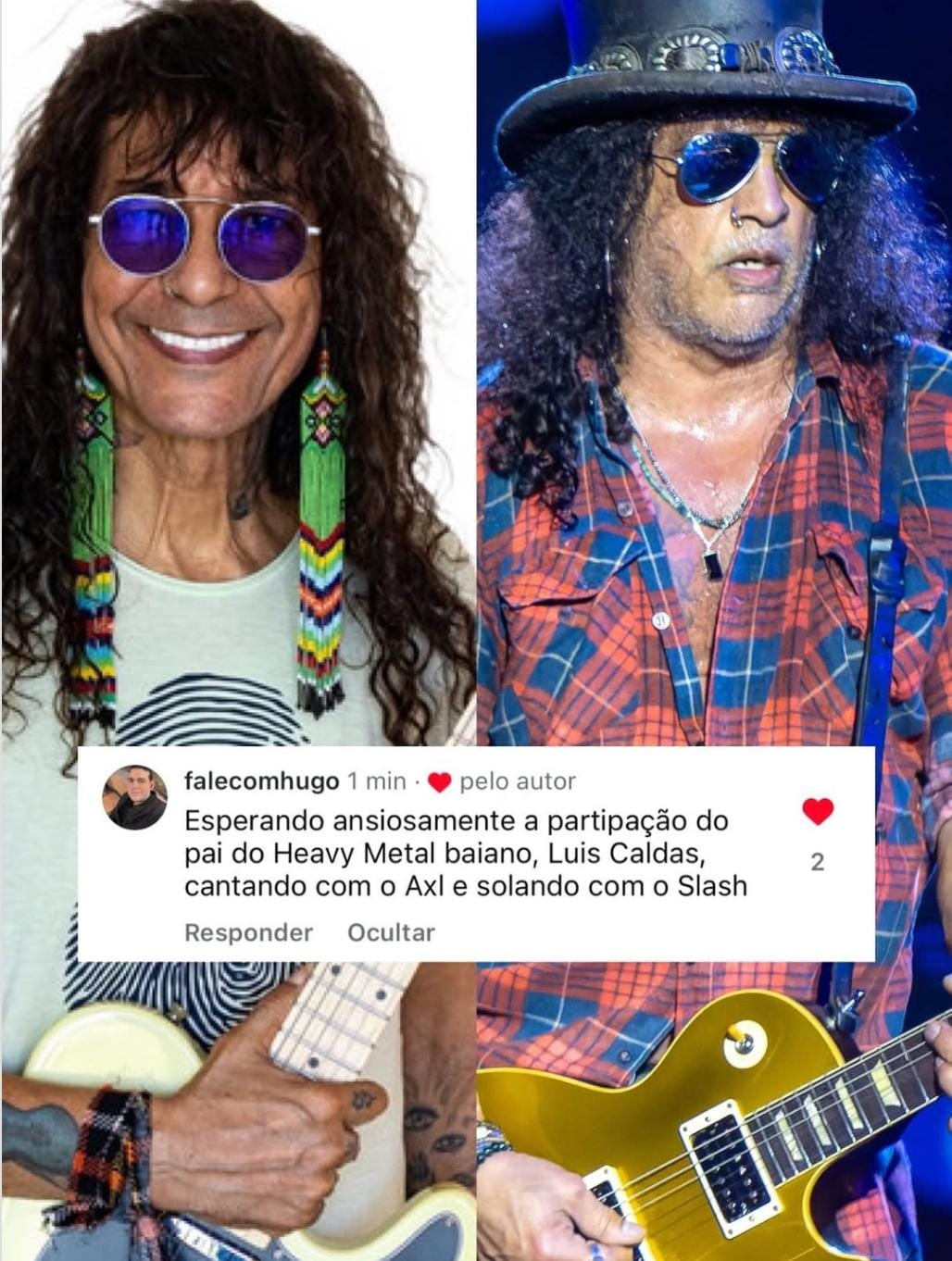 Já pensaram em Luiz Caldas dando uma palhinha com o Slash no show dos Guns N' Roses em Salvador? Previsto para o dia 15 de abril, a apresentação tem tudo para ser o grande evento no calendário baiano no primeiro semestre de 2026>