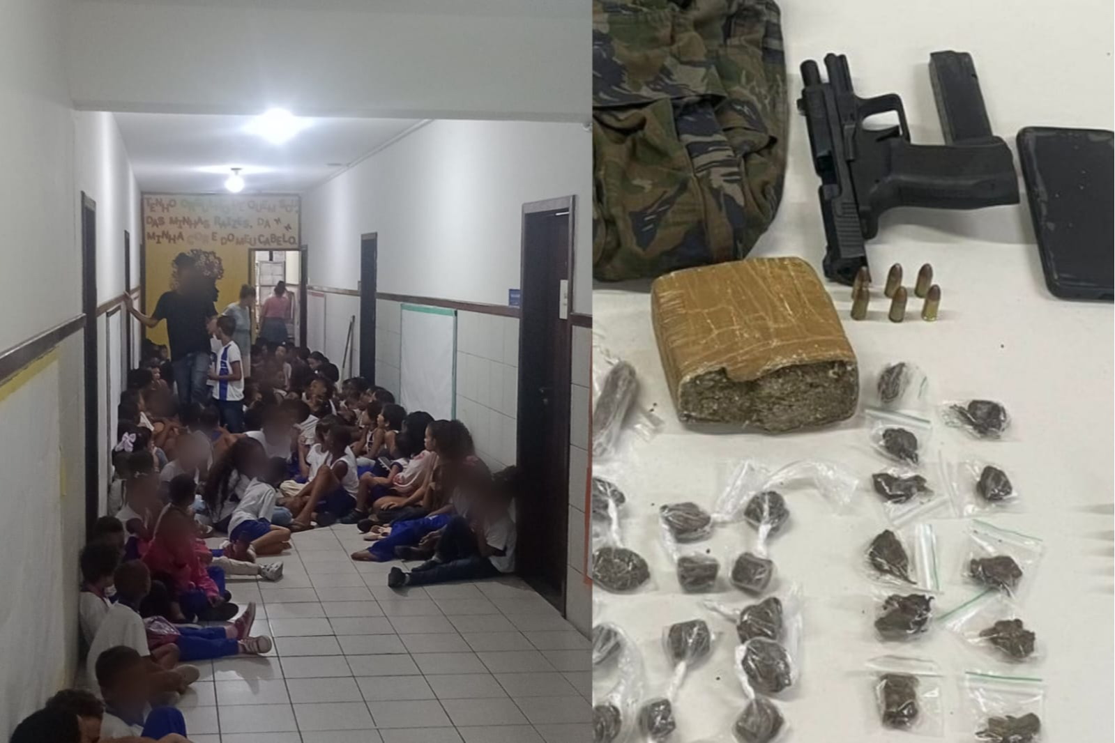 Imagens das crianças presas dentro da escola durante o confronto foram enviadas por moradores do bairro. A PM informou que o tiroteio aconteceu durante uma operação do Batalhão de Patrulhamento Tático Móvel (Patamo) na localidade do Parque Jocélia. Ainda segundo a corporação, a guarnição realizava rondas táticas na região quando se deparou com um grupo de homens armados. Ao notarem a aproximação dos policiais, os suspeitos efetuaram disparos contra a equipe, iniciando um intenso tiroteio.>