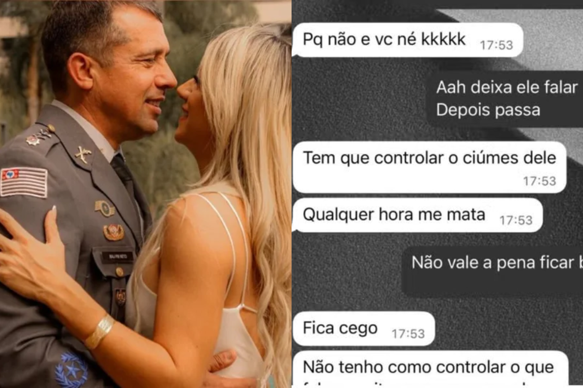 "Tem que controlar os ciúmes dele. Qualquer hora me mata. Fica cego. Não tenho como controlar o que falam, muito menos o que acham [...]", escreveu a policial na conversa com a amiga, segundo os advogados. O histórico de tensão no relacionamento também foi reforçado em depoimento prestado pela mãe da vítima à polícia. De acordo com ela, Gisele vivia uma relação abusiva, marcada por conflitos constantes, e o oficial teria comportamento violento e controlador.>