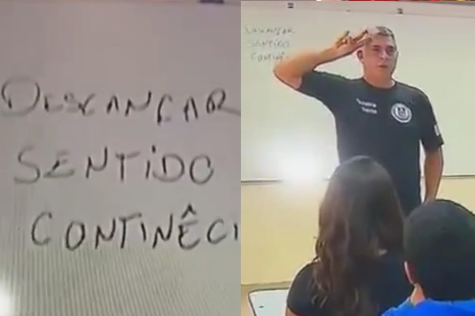 A falha ocorreu durante uma atividade conduzida por policiais militares aposentados, responsáveis pela monitoria do programa. No quadro, termos fundamentais para a "ordem unida", um conjunto de comandos e movimentos padronizados da Polícia Militar (PM), foram escritos de forma incorreta. Palavras como “descançar” e “continêcia” apareceram com grafias erradas, gerando dúvidas sobre o real domínio da língua portuguesa por parte dos instrutores.>