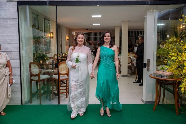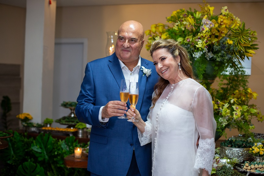 Especialista em produzir grandes festas, Denise Martinelli caprichou na celebração do seu casamento no último sábado (23) com o advogado João Maia. Na celebração, restrita à família e aos amigos mais próximos, a empresária foi conduzida ao altar montado sobre a piscina da casa do casal, em Patamares, por sua filha Beatriz que vive em São Paulo, estado de origem da noiva. A festa, que começou às 17h, seguiu madrugada adentro, com um serviço de bufê impecável, boa música (DJ e bandas) e alegria do casal que segue para curtir a lua-de-mel na Europa. >