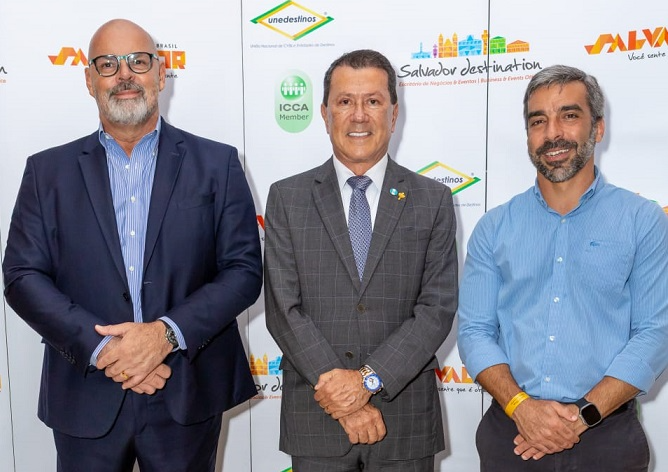 O Salvador Destination mudou de nome e de comando. O agora Visit Salvador Destination da Bahia terá um novo presidente após a saída de Glicério Lemos depois de quatro anos como presidente. Para celebrar as conquistas de sua gestão, como os 80 congressos confirmados que movimentaram cerca de R$ 900 milhões na economia local, Lemos se reuniu com representantes do trade na quarta-feira. Júlio Ribas, da Vinci Airports, e Cláudio Najar, diretor do Centro de Convenções estavam lá. >
