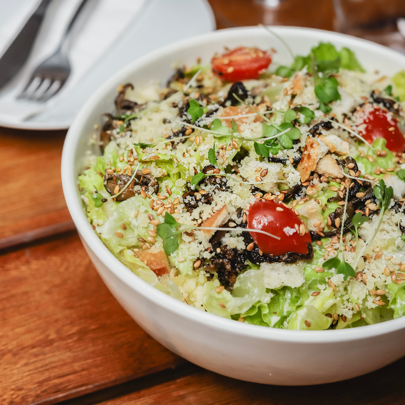 No Santo Antônio Além do Carmo, o Allê Varanda Bar tem no seu menu a Insalata del Senatore, feita com shitake e shimeji salteados, alface americano, croutons, pipoca de linhaça, castanha de caju e molho da casa, leve e refrescante. >