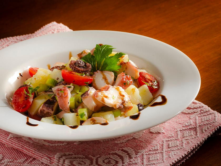 Também o chef sardo Marco Caria, aposta nos frutos do mar para suas receitas de saladas que estão no cardápio do Isola Cucina Italiana: Insalata Mediterrânea, que tem folhas mistas orgânicas com camarão refogado no suco de laranja, e o Polpo alla Gallurese, uma saladinha de polvo com batatas e tomatinhos. Outro italiano que aposta nas salada é Sergio Arno. O chef criou para o La Pasta Gialla, na Pituba, a Salada de Pera e Gorgonzola, que vem com mix folhas, pêra grelhada, gorgonzola e nozes assadas ao vinagrete de limão com mel.>