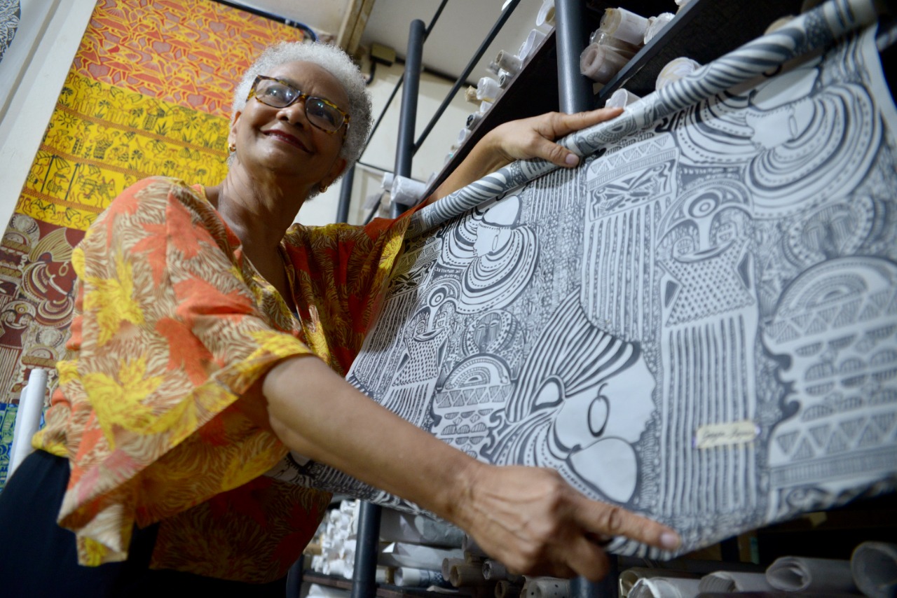 Goya guarda tudo, rebote da tendência natural que tem de ser pesquisadora. Antes de fazer Artes Plásticas na Ufba, estudou História na mesma universidade e tinha sonho de ser arqueóloga, por conta de seu gosto por pinturas rupestres, línguas primitivas e histórias por trás da formação do mundo. “A questão do documentário é que, ao longo desses anos, eu vejo a necessidade de preservar a nossa memória. Eu tenho todas as minhas criações, todos os esboços, desenhos, artes finais, tecidos, eu preservo tudo isso numa memória e era a hora de colocar, principalmente para o público, que o trabalho não é um produto, ele tem uma história por trás”, destaca.>