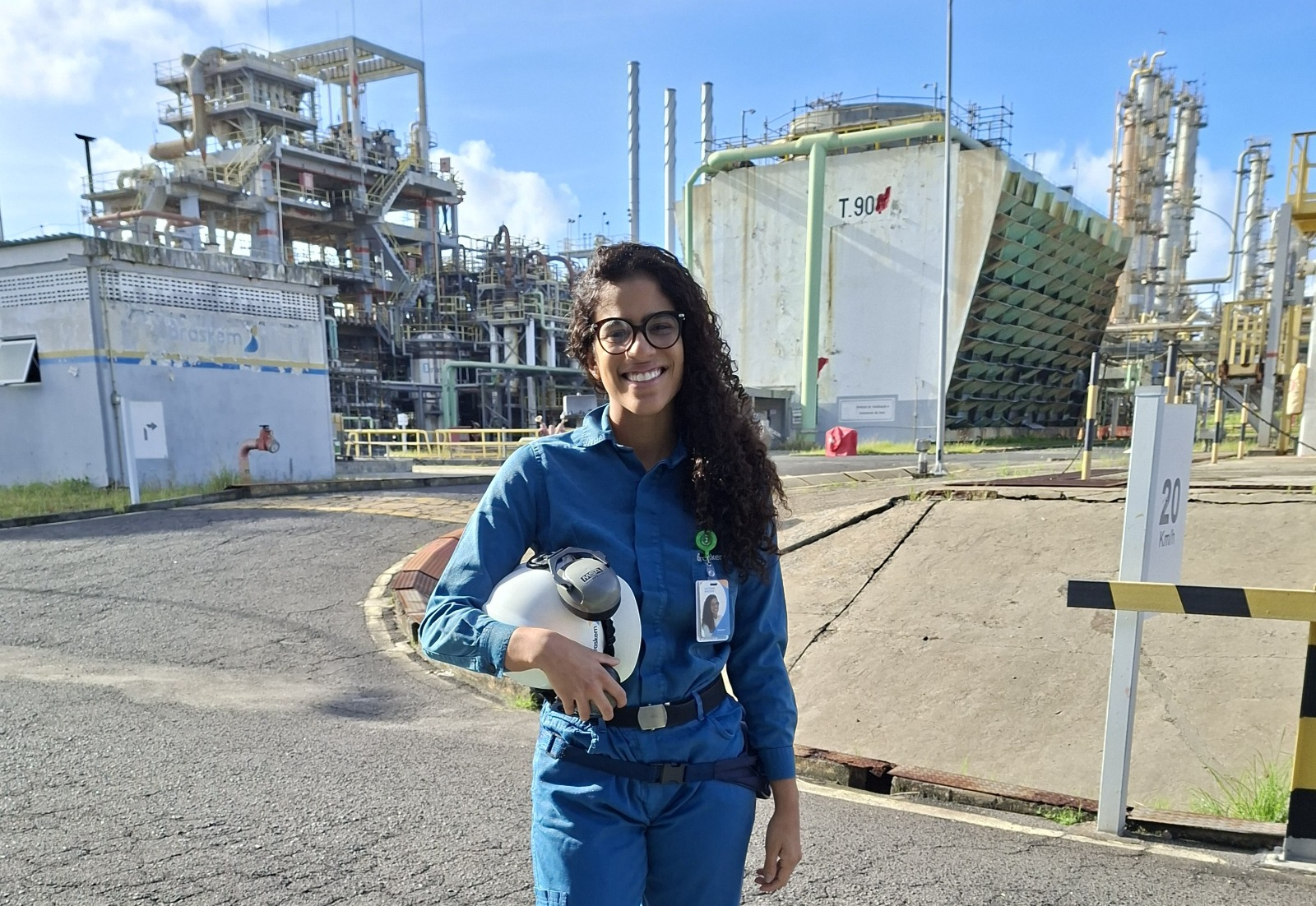 Nas unidades da Braskem no Polo Industrial de Camaçari, 12% dos integrantes atuam em posições de engenharia. Victória de Jesus Macedo, de 27 anos, é uma dessas profissionais. Formada em Engenharia Química, ela ingressou na companhia em 2021 como estagiária e foi efetivada em 2023, como engenheira de Produção da unidade de Polietileno. Uma conquista que, segundo ela, simboliza a realização de um sonho. “Eu sempre digo que todo engenheiro deveria experimentar o trabalho na indústria, porque você aprende a lidar com todo tipo de situação. Por ser um setor de extrema importância para a sociedade e por ter que lidar com rápidas mudanças de cenários, seu desenvolvimento pessoal dentro de um ambiente assim é exponencial”, explica.>