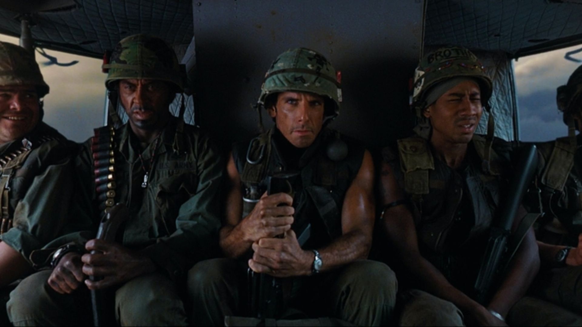 A comédia satírica de 2008 foi acusada de blackface — prática em que os intérpretes se maquiavam com cores escuras para representar afro-americanos — com o personagem Kirk Lazarus, vivido por Robert Downey Jr.>