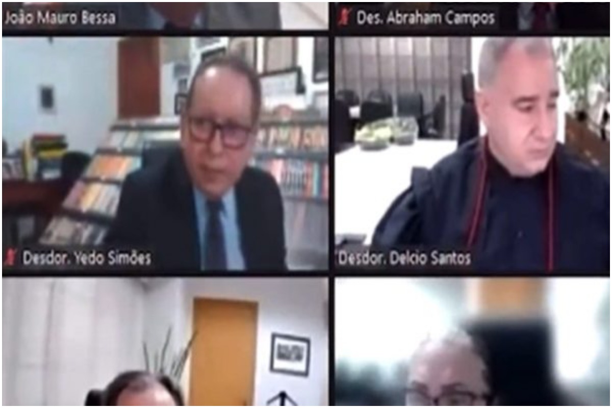 O desembargador volta para a sessão sem falar nada, depois de resolver a situação. O Tribunal de Justiça afirmou que a peça é um painel que ele escolheu para preservar a intimidade dos familiares que podem precisar transitar no entorno do cômodo enquanto ele está em sessão.>