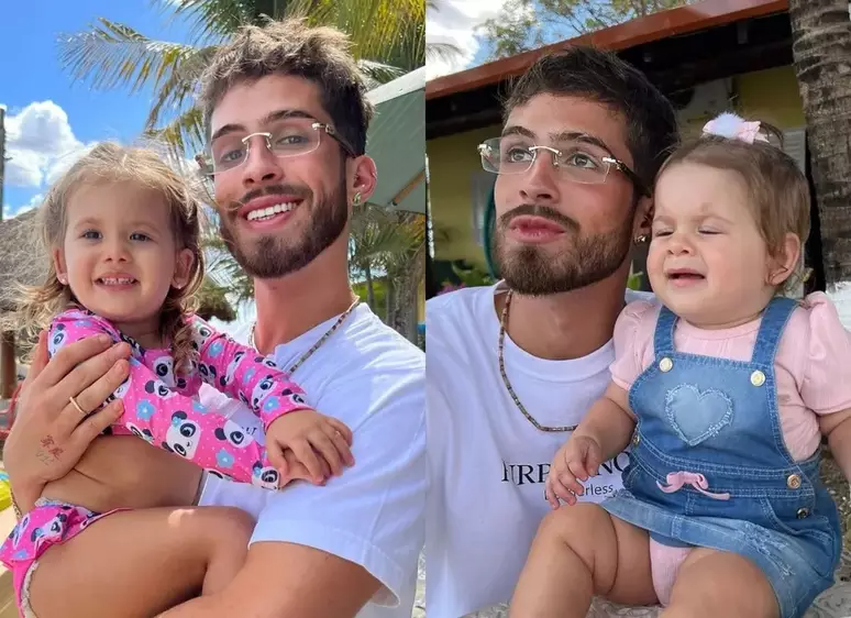 Em clima de tio coruja, o ator contou que foi “assaltado” por Maria Flor, filha de Zé Felipe e Virginia Fonseca, que tomou suas câmeras pessoais no meio da festa. A pequena não só pegou tudo como ainda resolveu presentear a irmã, Maria Alice, com um dos equipamentos.>