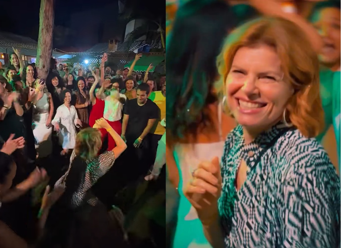Quem comandou a música foi o cantor Feyjão, que trouxe sucessos do samba e da MPB. Um dos ápices da festa foi o momento em que os convidados formaram uma roda para dançar “Na Boquinha Da Garrafa”, clássico do pagode baiano nos anos 1990.>
