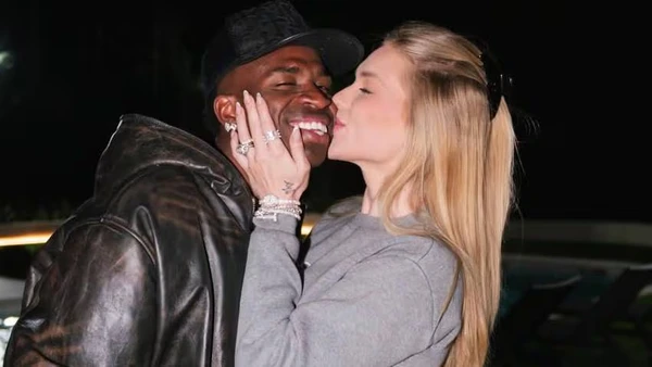 Juntos há cerca de cinco meses, o jogador fez uma declaração com direito a um "Te amo" público, Vini postou uma sequência de momentos dos dois e um texto, exaltando a namorada.>