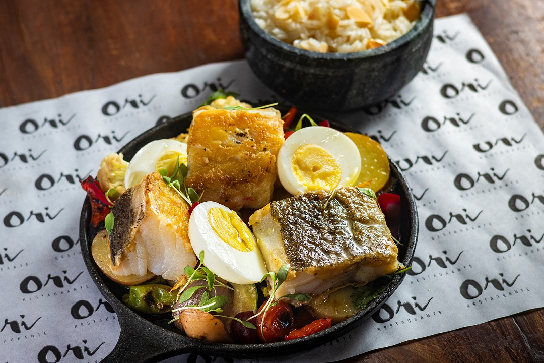 No restaurante mais casual do Grupo OriGem, o Orí, os premiados chefs Fabrício Lemos e Lisiane Arouca criaram duas sugestões de bacalhau: o Arroz de Bacalhau e o Bacalhau de Forno com vegetais grelhados, ovo cozido, azeitonas e coulis de pimentão assado.>
