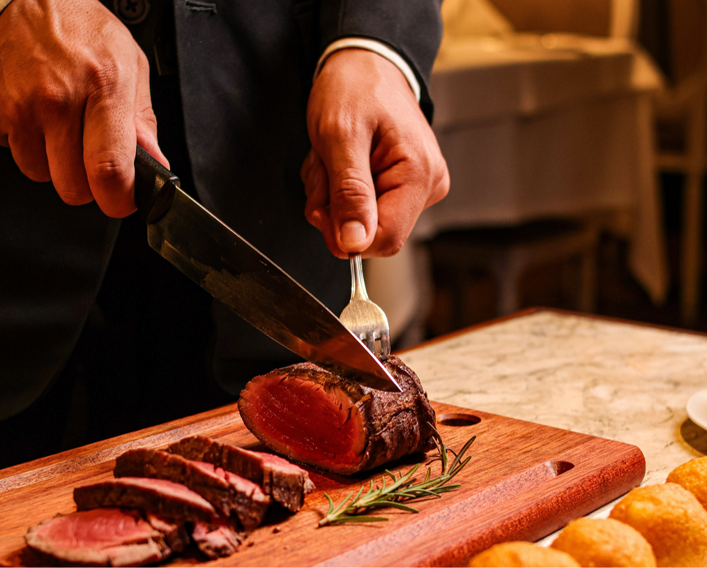 O menu contempla também sugestões de “petit comité”, com opções para compartilhar, como o Filé Chateaubriand servido com batatas, com a opção de escolha entre molhos clássicos (béarnaise, bordelaise ou poivre), além de uma Paleta de Cordeiro assada lentamente no próprio molho, que vem acompanhada de batatas gratinadas.>