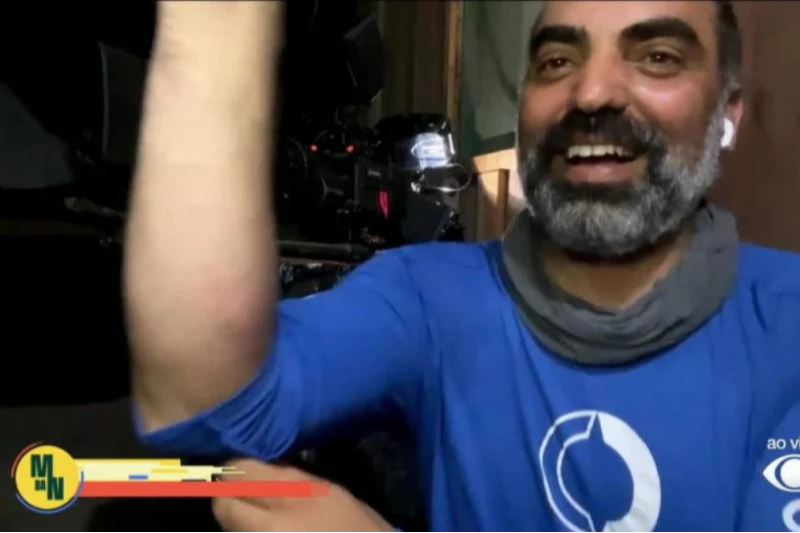 Na atração, o jornalista estava explicando sobre desova das tartarugas-da-amazônia quando sentiu a dor em seu braço. Então, o cinegrafista mostrou ao vivo o inchaço no braço.>