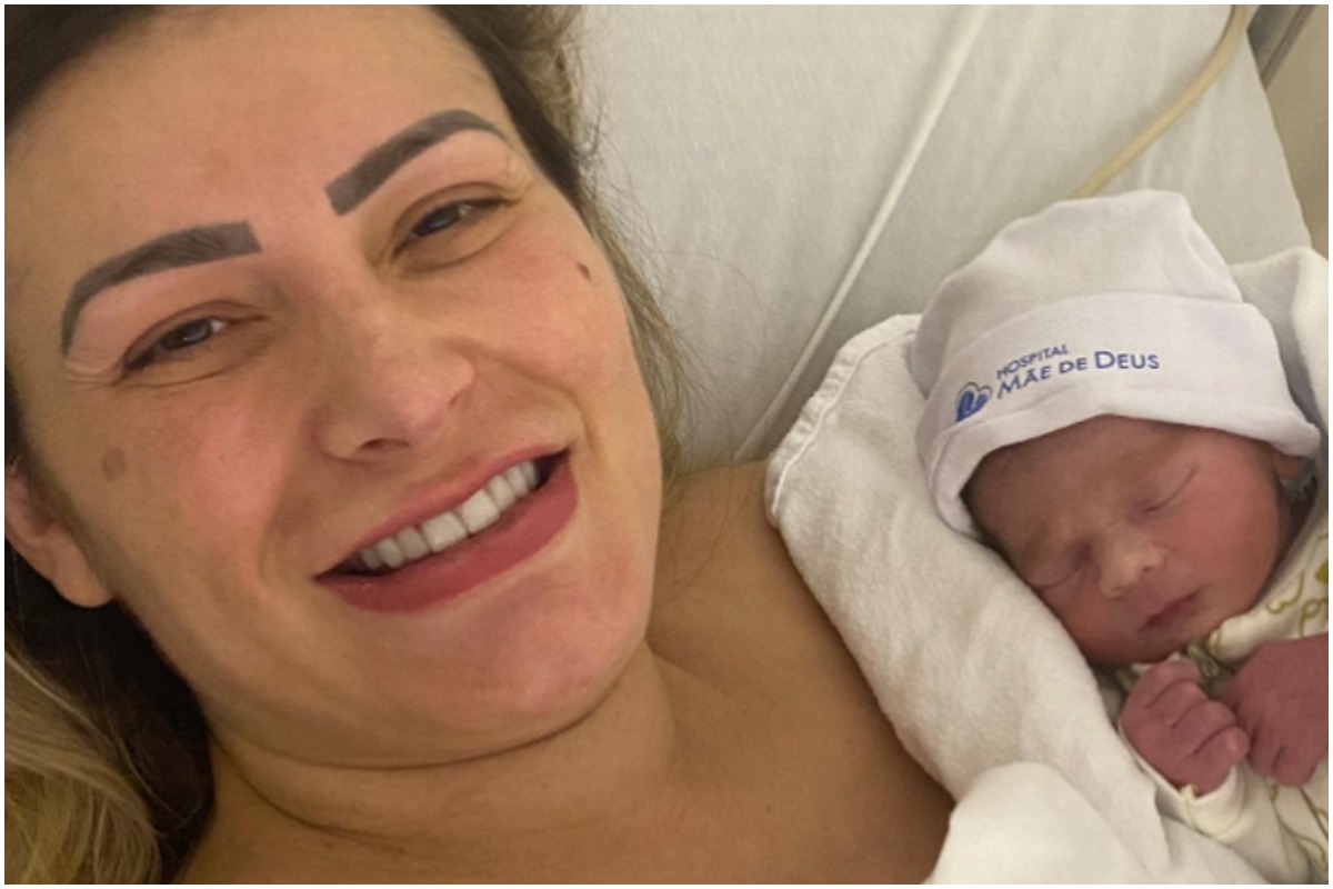 Leon nasceu na noite da sexta-feira (11). "Ele nasceu saudável e não precisou de UTI", escreveu a influencer, postando uma foto do menino, a quem deu à luz após gestação de 34 semanas.>