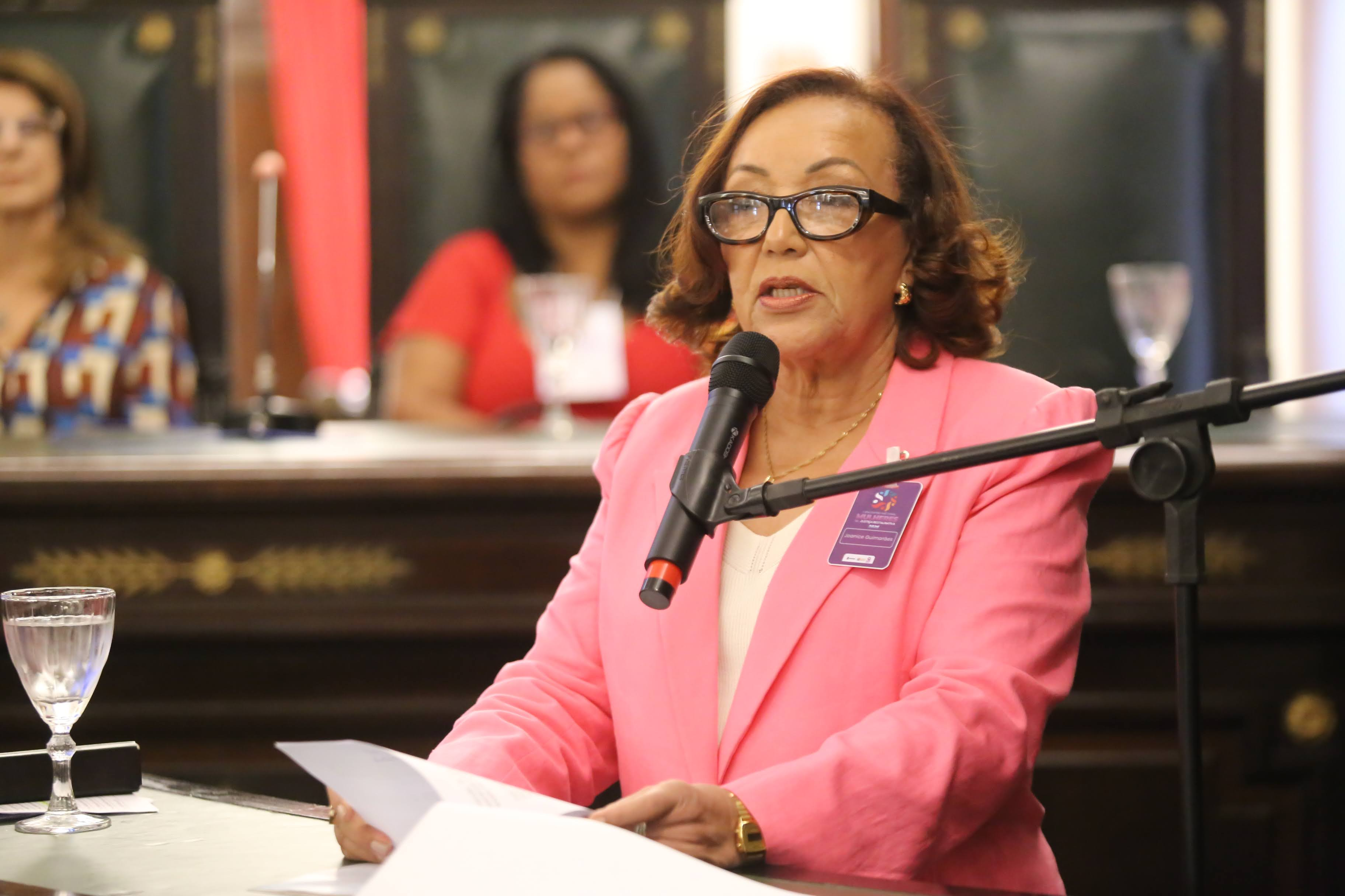 Joanice Maria Guimarães de Jesus é desembargadora do Tribunal de Justiça do Estado da Bahia. Mestre em Segurança Pública e Cidadania (UFBA). Especialista em Ciências Criminais (UNAMA). Especialista em Direito do Estado (Faculdade Baiana de Direito). Presidente do Comitê Gestor do Núcleo de Justiça Restaurativa de Segundo Grau do PJBA. Presidente da Comissão de Prevenção e Enfrentamento ao Assédio Moral, Assédio Sexual e outras formas de Discriminação do 2º Grau do TJBA.>
