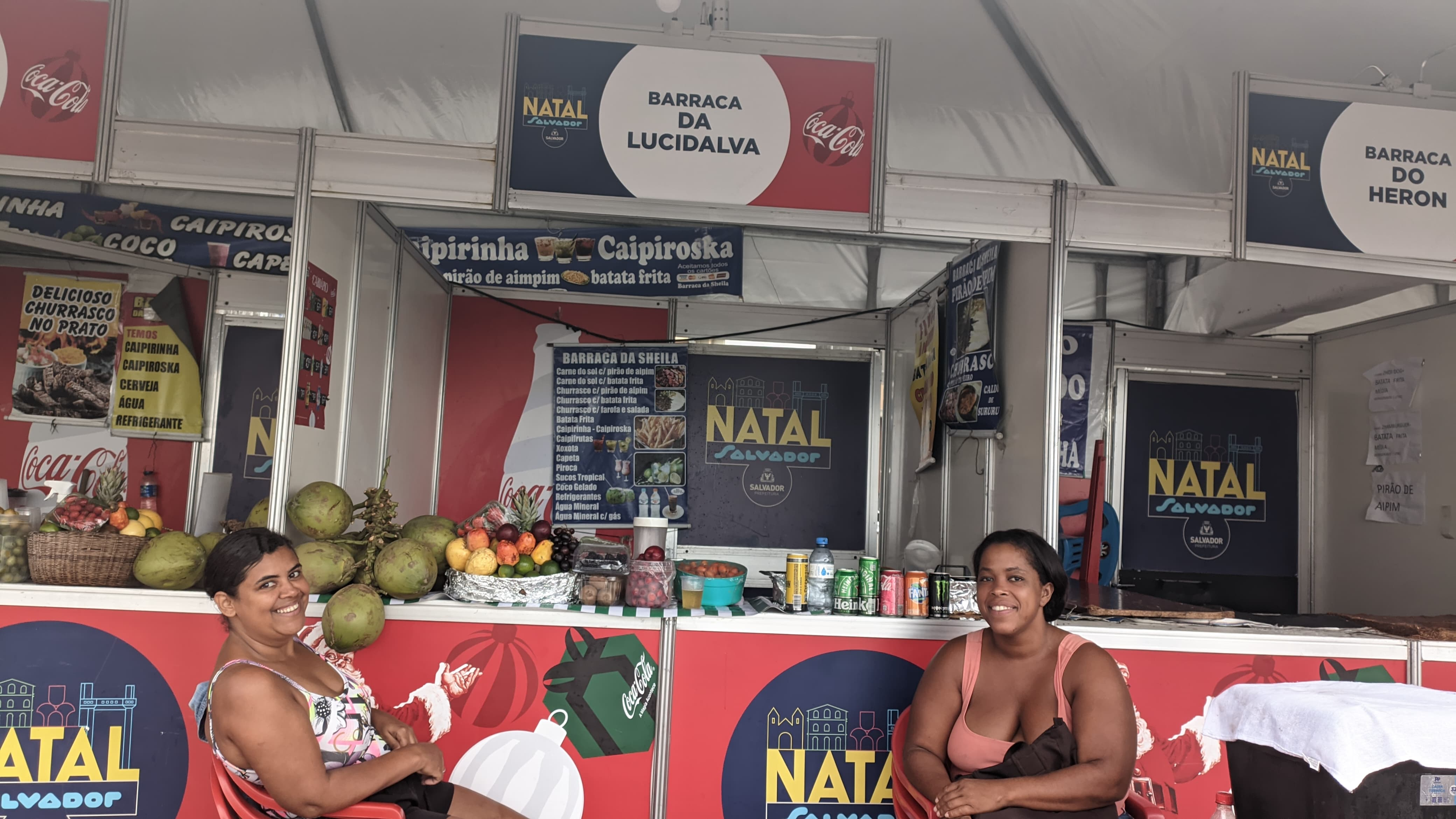 Quem cruza o Largo Terreiro de Jesus encontra, na intersecção entre o largo e a Praça da Sé, uma mulher simpática e sorridente que quase sempre está conversando com clientes. Trata-se da ambulante Natiane Silva, 48 anos, que diariamente, há 18 anos, atua no local vendendo água, refrigerantes, bebidas alcoólicas, doces e salgados. Naquele canto da calçada que já tem sua marca, ela conta que costumam passar locais e turistas todos os dias, mas na última semana, após a implementação da decoração de Natal, um fluxo novo passou a movimentar o comércio do Centro Histórico de Salvador e a beneficiou. >