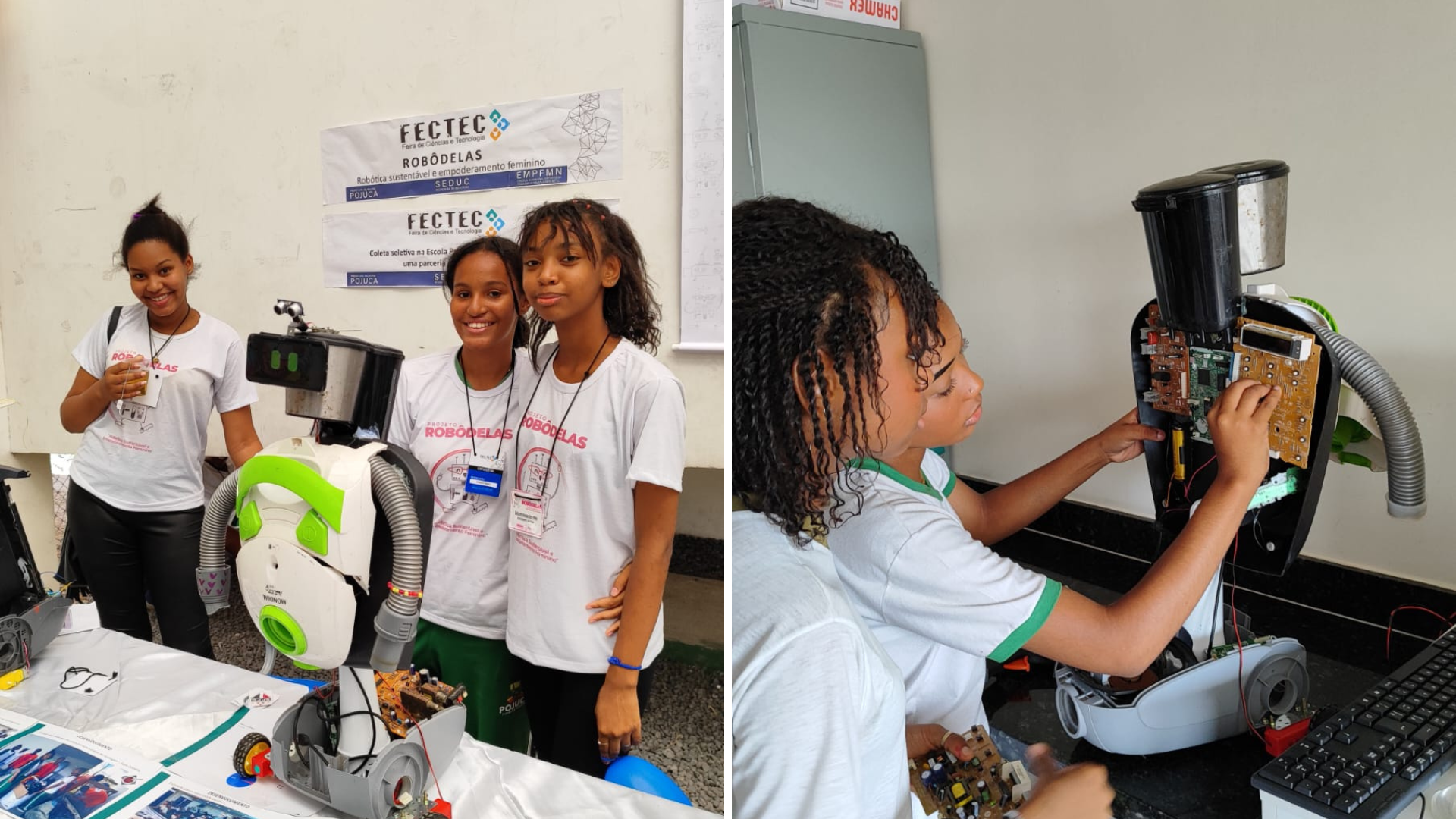 “A coleta de lixo eletrônico também era uma problemática que trabalhávamos nas aulas. Os robôs foram uma ferramenta para divulgar a força das mulheres na tecnologia e um meio para falarmos sobre esse tema”, afirmou Manassés. >