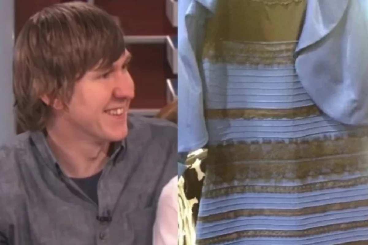O vestido quebrou a internet em 2015, após a mãe da noiva, Caitlin McNeill, publicar no Tumblr uma foto com o questionamento: o vestido é azul e preto ou branco e dourado?>