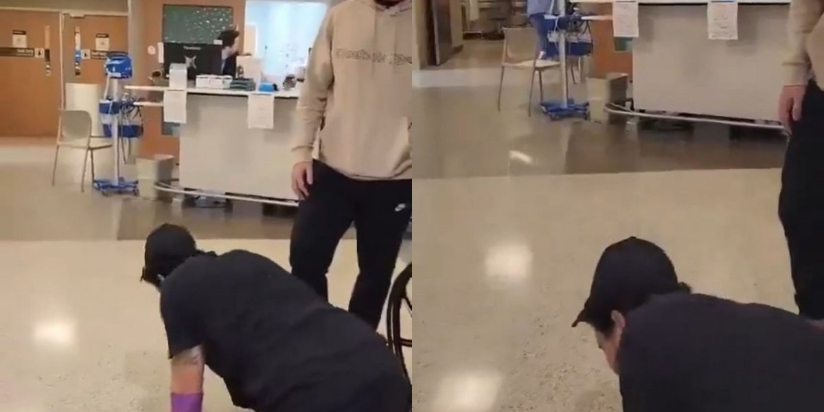 O homem, cuja identidade não foi oficialmente revelada, apresentava sinais de dor extrema. Relatos não confirmados de testemunhas sugerem que ele sofria de uma crise aguda de cálculos renais (pedra nos rins). Outras pessoas que estavam na sala de espera aparecem no vídeo confrontando a equipe do hospital, exigindo que o homem fosse levado para uma área de tratamento.>