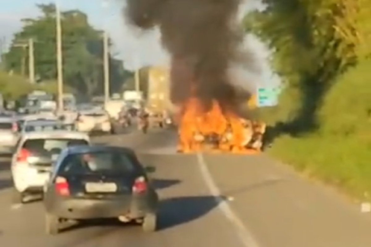 Ainda não se sabe o que causou o incêndio no veículo. >