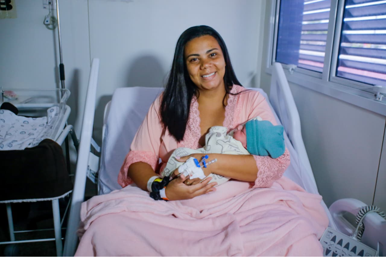 “Eu tinha um conhecimento muito superficial da analgesia e não tive esse suporte da primeira vez que dei à luz. Aqui [na Maternidade Marida Conceição de Jesus], desde o momento da internação, já me foi perguntado se eu conhecia e tinha interesse, e eu sinalizei que sim, caso eu não suportasse a dor do parto. Quando eu estava com 7 cm de dilatação, às 5h, eu pedi e o pessoal foi bem ágil. O anestesista conversou comigo, explicou tudo e aplicou. Eu pude descansar e depois retomar ao trabalho de parto. Meu filho nasceu às 5h40 e nem a dor do expulsivo eu senti, foi supertranquilo”, narra Nicole de Freitas. >