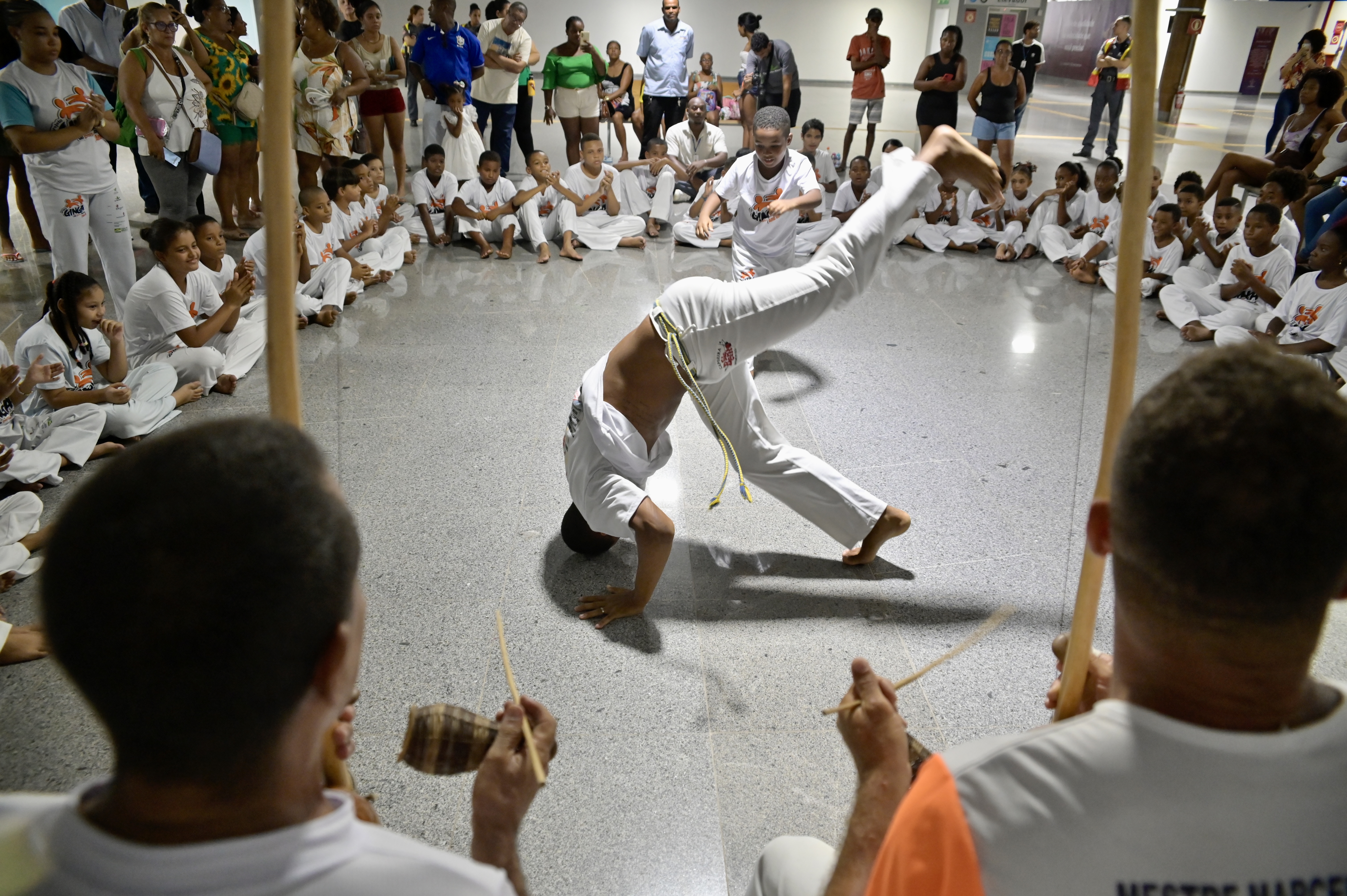 Antes do horário marcado, dezenas de crianças vestidas com trajes esportivos brancos já formavam uma pequena aglomeração no 2º andar do Terminal de Integração de Pituaçu, na tarde desta sexta-feira (3). A ocasião para a reunião era a mais nobre possível: após um ano de aprendizado de capoeira, através do projeto Ginga de Peito Aberto, os jovens inscritos estavam prestes a comemorar seu batismo diante de mestres da expressão cultural e arte marcial afro-brasileira, que confere a eles o título de capoeirista.>